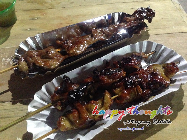 | Our second round of ihaw-ihaw. One stick of pork barbecue for me from Aling Beybi's and two sticks of bulaklak(pork intestine) for my husband from Iya's Grill. |